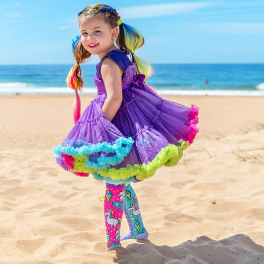 Chez Madmia, nous avons toutes les couleurs et tous les styles possibles pour rendre les pieds de vos tout-petits heureux. Nos collections uniques de chaussettes folles pour tout-petits comprennent des chaussettes Piggy, des chaussettes Bunny, des chaussettes pour garçons, des chaussettes Cheeky Cheetah, des chaussettes Fairy Dust, des chaussettes Monster, des chaussettes Glitz N Glam, des chaussettes Color Run, des chaussettes Sunset, des chaussettes Cat, des chaussettes Skatercorn, des chaussettes Mini Pony, Chaussettes pour chien, super-héros, chaussettes éléphant, chaussettes licorne heureuse, chaussettes dinosaure, chaussettes licorne volante, chaussettes safari, chaussettes licorne et chaussettes sirène.Nos chaussettes hautes sirène pour tout-petits sont une paire à mélanger et à assortir dans des couleurs bleues et roses. Il est également livré avec une impression à l'échelle assortie pour vous permettre d'explorer la sirène qui sommeille en vous. Un pompon en forme de queue complète le tout et fait bouger et danser votre tout-petit comme une petite sirène.